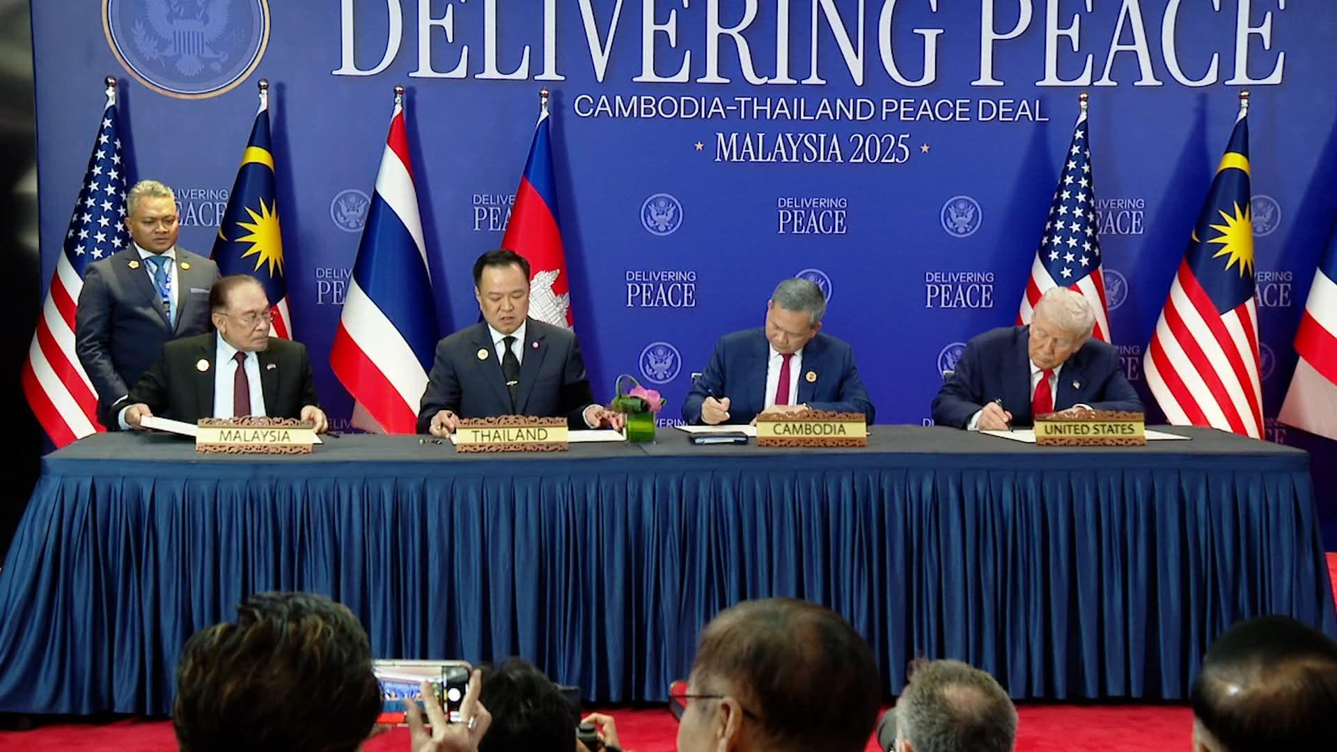 W podpisaniu umowy wzięli udział premier Tajlandii Anutin Charnvirakul i premier Kambodży Hun Manet, którym towarzyszył premier Malezji Anwar Ibrahim, rotacyjny przewodniczący Stowarzyszenia Narodów Azji Południowo-Wschodniej (ASEAN). Trump, który właśnie w dramatyczny sposób przybył na międzynarodowe lotnisko w Kuala Lumpur, gdzie zatańczył swój popisowy taniec z lokalnymi artystami, nazwał to wydarzenie „doniosłym dniem dla wszystkich mieszkańców Azji Południowo-Wschodniej”. W krótkim przemówieniu pochwalił „odważne przywództwo” obu premierów Azji Południowo-Wschodniej, doceniając „niestrudzone wysiłki” swojej administracji i serię nocnych telefonów, które odmieniły bieg wydarzeń. „Świat potrzebuje przywódców, którzy są gotowi bronić pokoju” – oświadczył Trump, dodając, że umowa może „uratować miliony istnień ludzkich”.