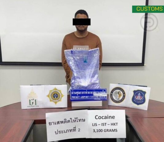 Patong — Policja w Patong aresztowała obywatela Nigerii pod zarzutem handlu kokainą po tym, jak operacja policyjna przerodziła się w pościg z dużą prędkością i...
